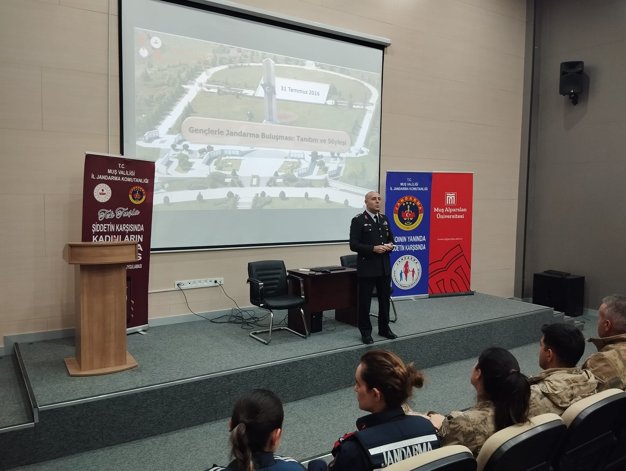 In the seminar, Lieutenant Colonel Yağmurkaya provided comprehensive information on the areas of responsibility of the gendarmerie organization, modern security concepts, the impact of technological developments on gendarmerie services, and important considerations in career planning. He offered suggestions to contribute to the professional development of the students and also provided detailed explanations about career paths and application processes for young people wishing to join the gendarmerie.