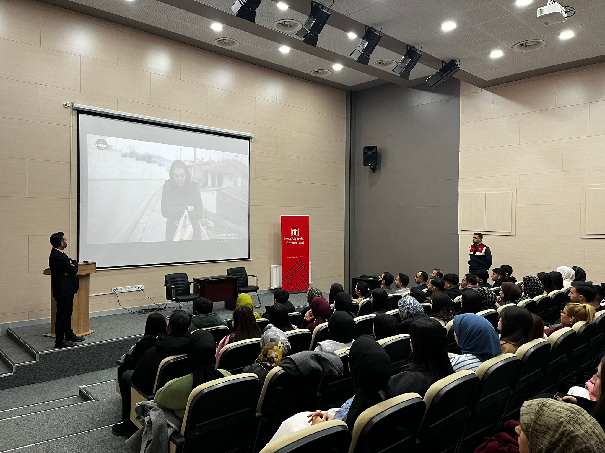 A seminar on "Combating Substance Abuse" was organized by the Muş Provincial Gendarmerie Command at our Vocational School on Tuesday, December 16, 2025, at 1:30 PM. The seminar was held in the Hakkı Dursun YILDIZ Conference Hall.