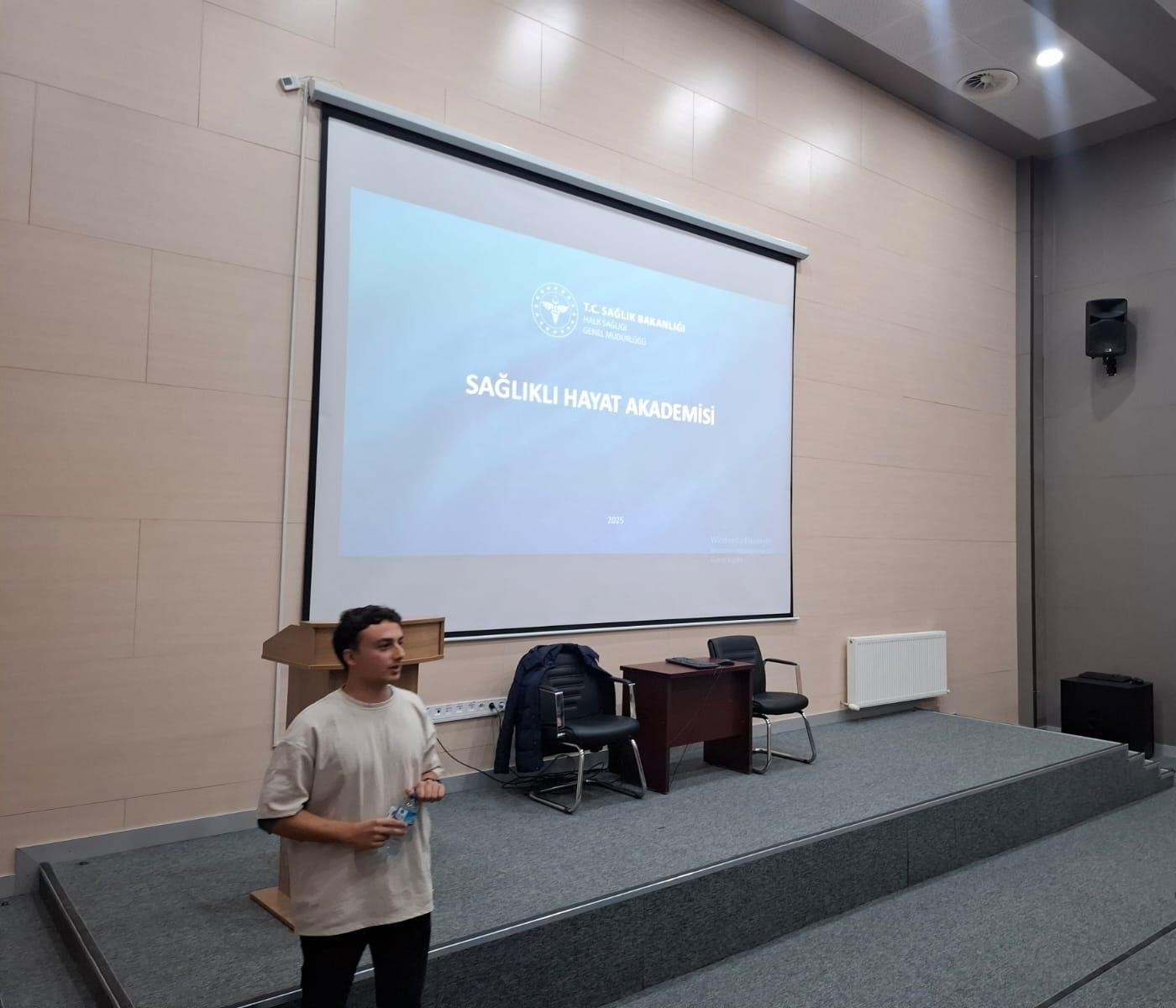 Dr. Veli SAKA, sağlık alanındaki bilgi ve deneyimlerini paylaşarak, koruyucu sağlık hizmetlerinin birey ve toplum üzerindeki etkilerine dikkat çekti. Öğrenciler ve personelimizin yoğun ilgi gösterdiği seminerde, sağlıklı yaşam bilincinin artırılmasının önemi vurgulandı.